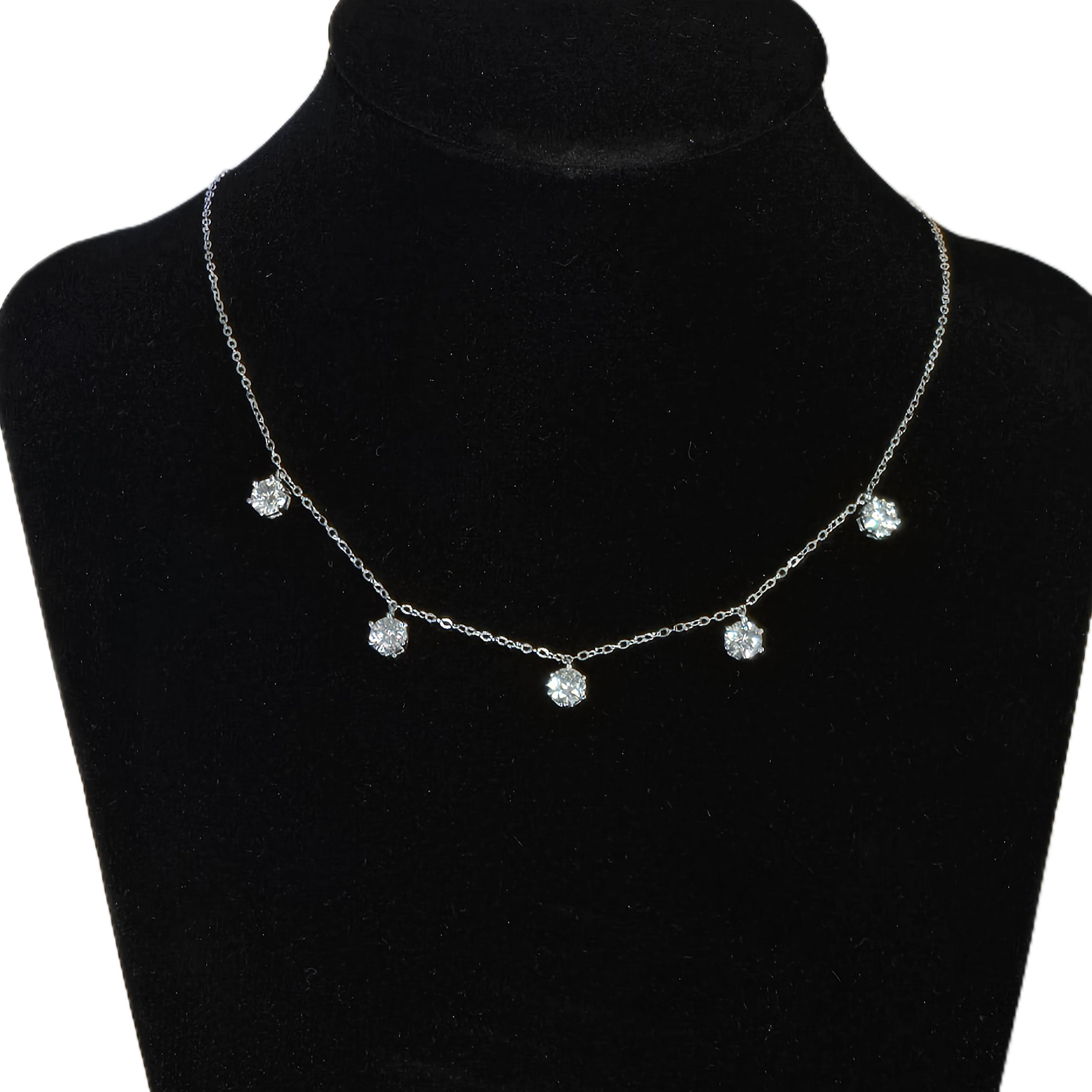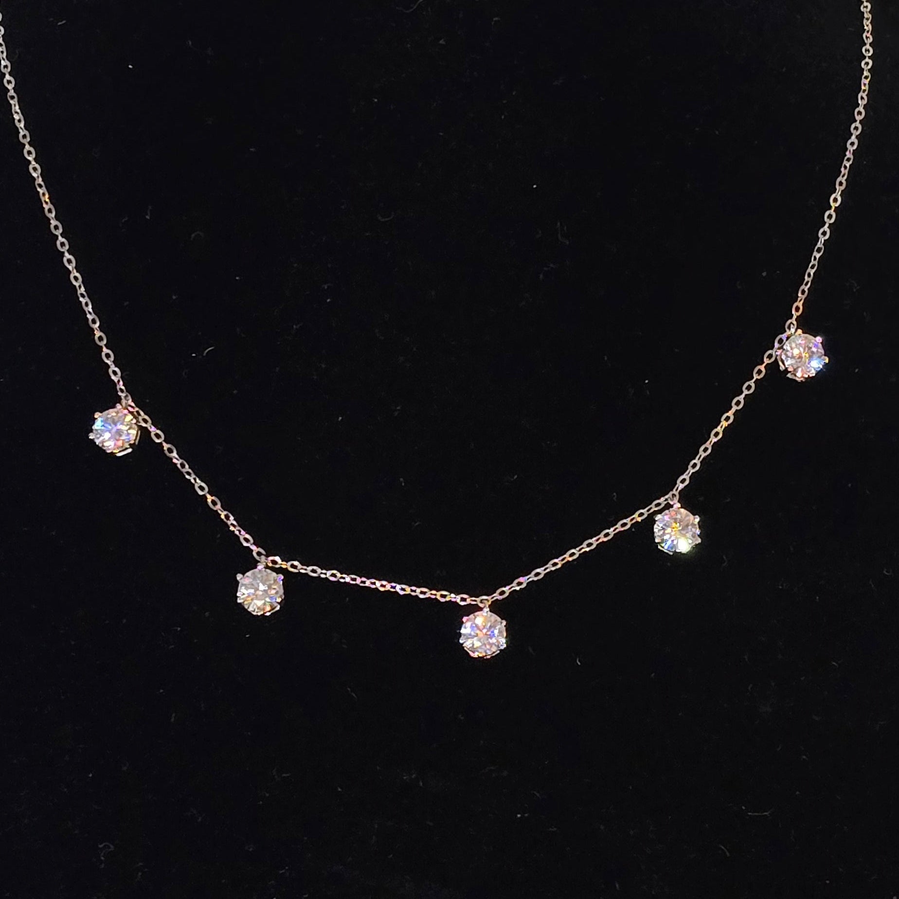 Elegant 45 cm long necklace with five sparkling round moissanite stones, each 0.5 carat and GRA certified with VVS1 clarity. Made of genuine 925 sterling silver and plated with 18K gold for a luxurious and timeless finish. Perfect for elevating your look for both everyday and festive occasions.