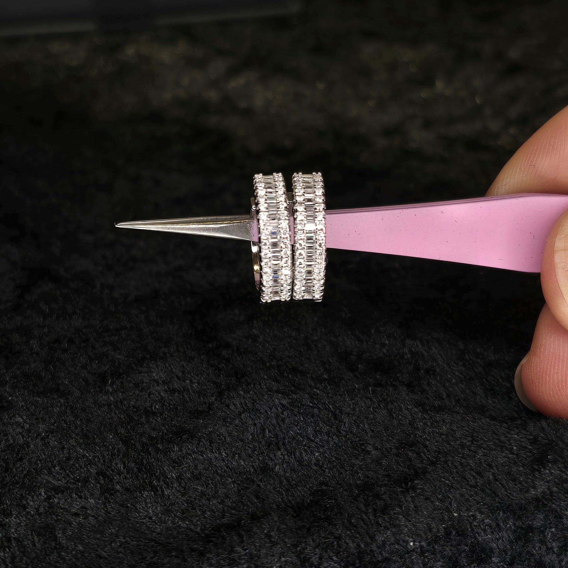 Add a touch of timeless elegance to your look with these exquisite baguette-cut moissanite earrings.