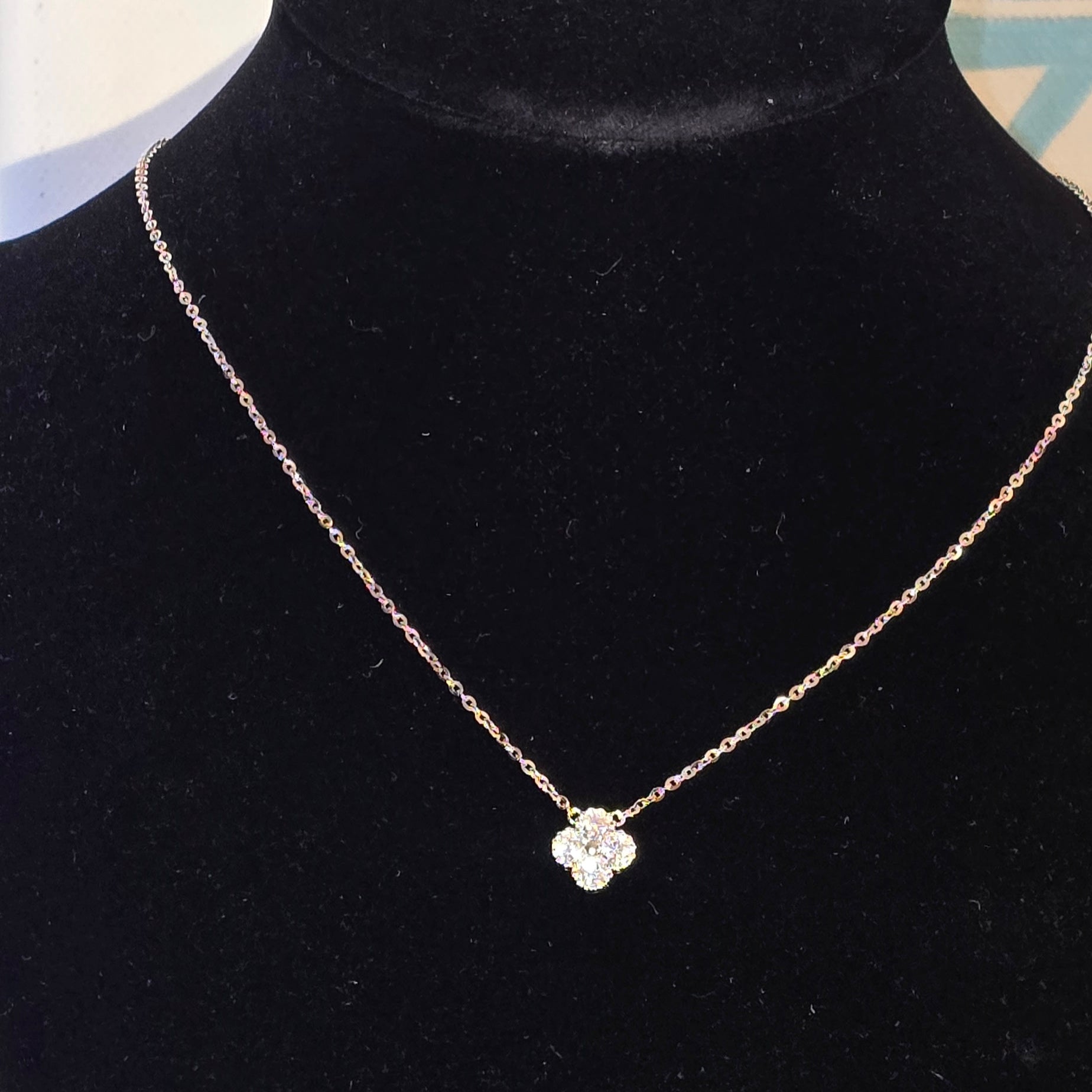 Halsband i silver pläterat med 18K guld, dekorerat med gnistrande Moissanite-diamanter i fyrklöverdesign. Elegant, tidlös och perfekt som gåva eller till festliga tillfällen. Levereras med GRA-certifikat.