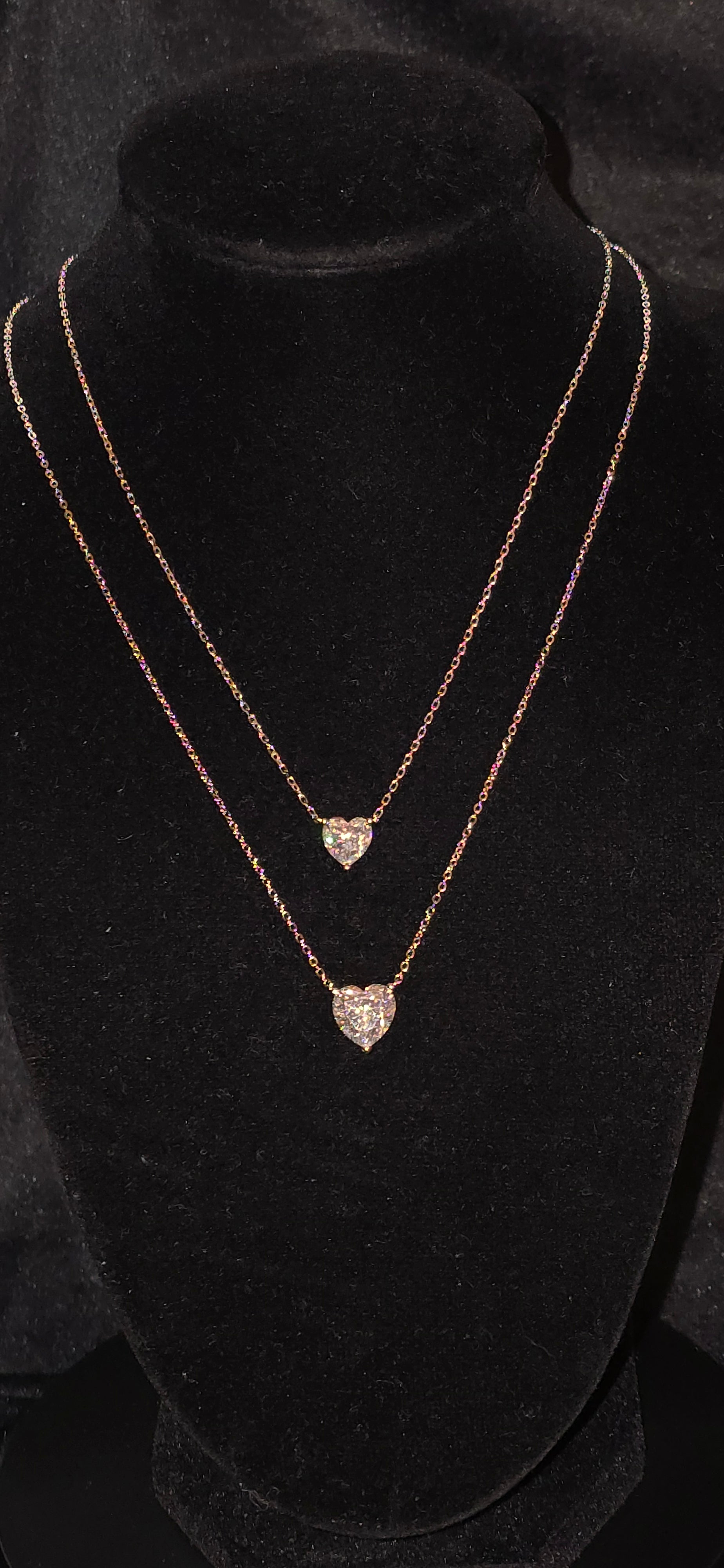 Vackert halsband med en gnistrande 2 carat hjärtformad moissanite, GRA-certifierad och med VVS1-klarhet för maximal briljans. Hängen är tillverkat i äkta 925 sterling silver och pläterat med 18K guld för en lyxig och tidlös finish. Perfekt som en romantisk gåva eller en elegant detalj till vardag och fest.