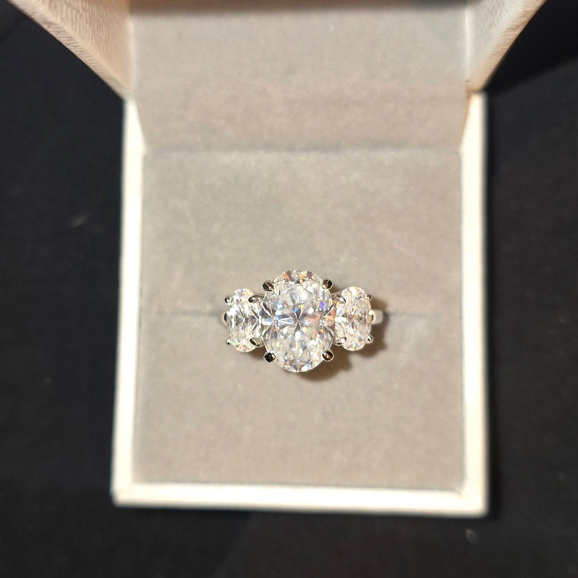 Denna eleganta ring är tillverkad i äkta silver pläterat med vitt guld och prydd med gnistrande moissanit-diamanter.