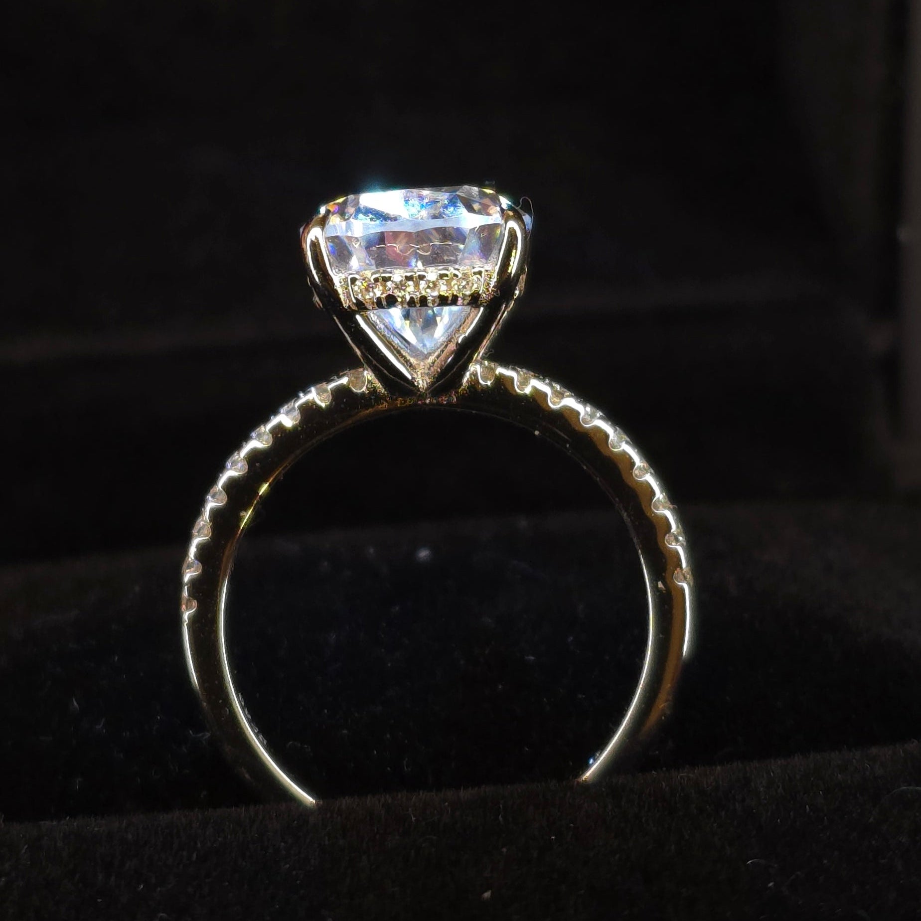 Upptäck tidlös elegans med denna exklusiva moissanite-ring på 5 karat – en ädelsten som gnistrar lika vackert som en diamant.