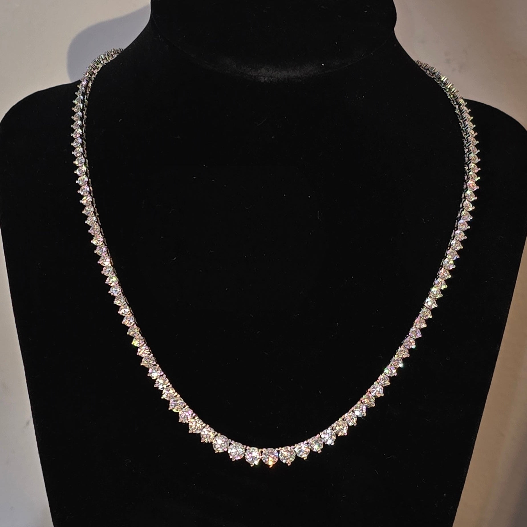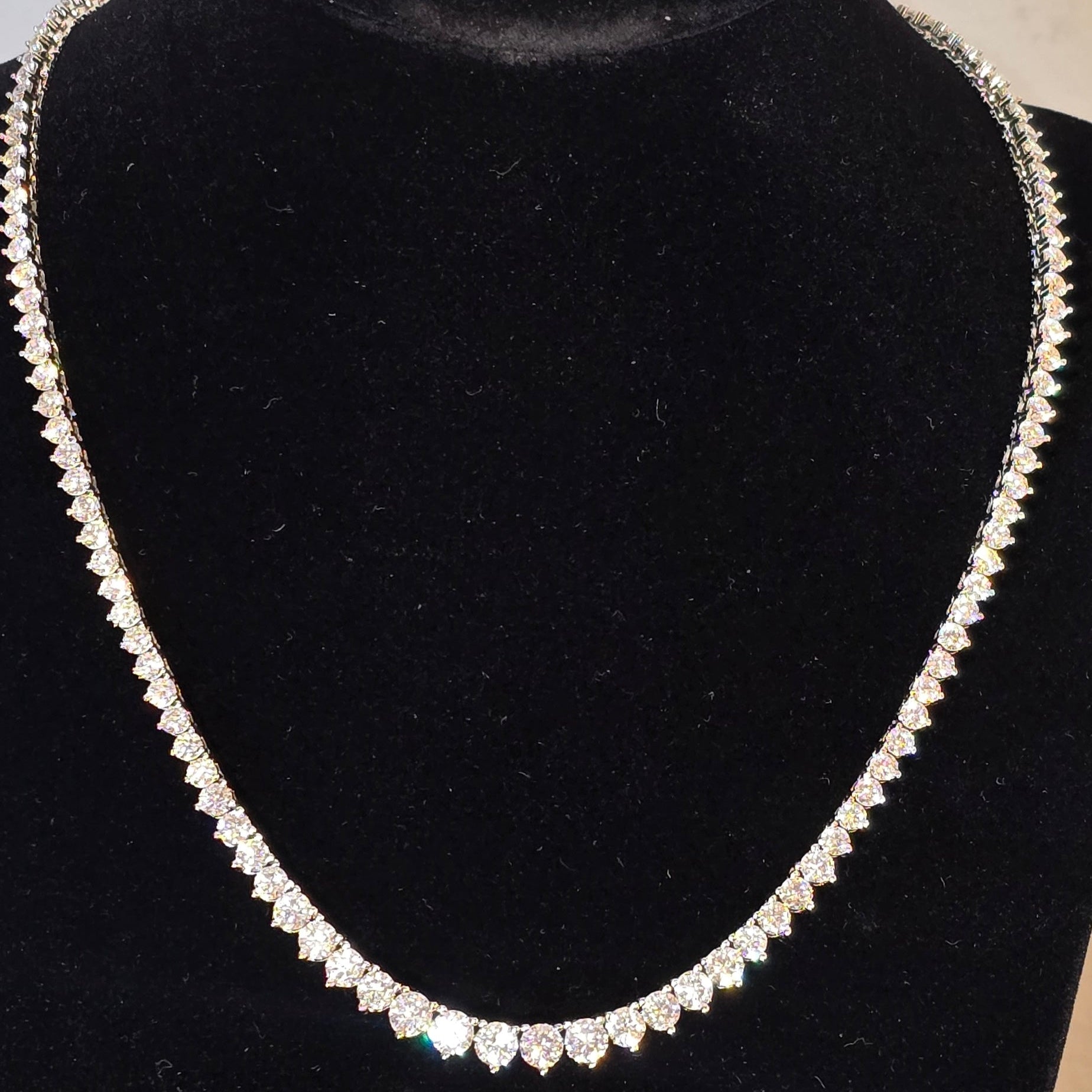 Stilrent och gnistrande halsband med GRA-certifierade moissanite-stenar. Handgjort i 925 sterling silver, pläterat i guld – perfekt balans mellan lyx och prisvärdhet. Ett elegant statement för alla tillfällen.