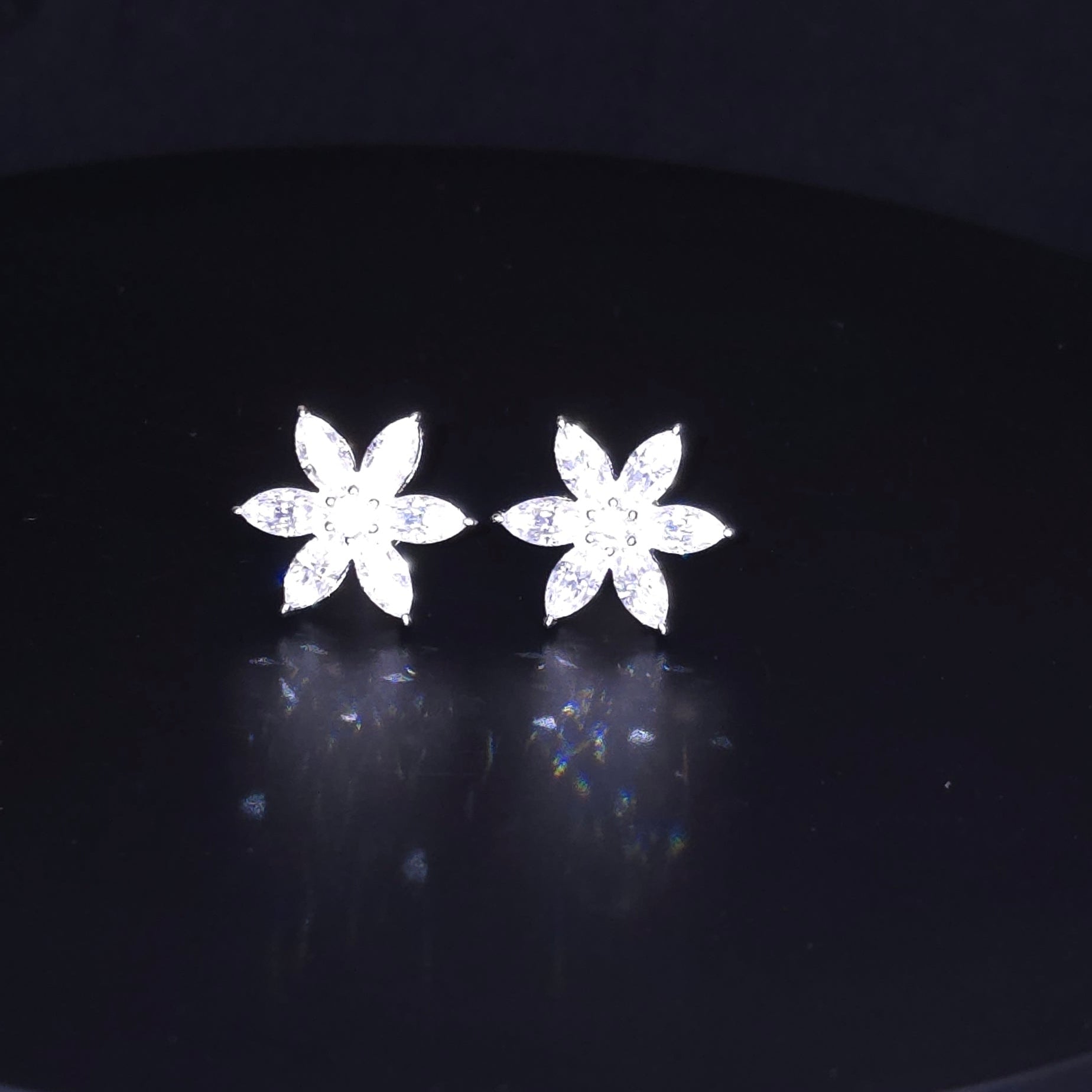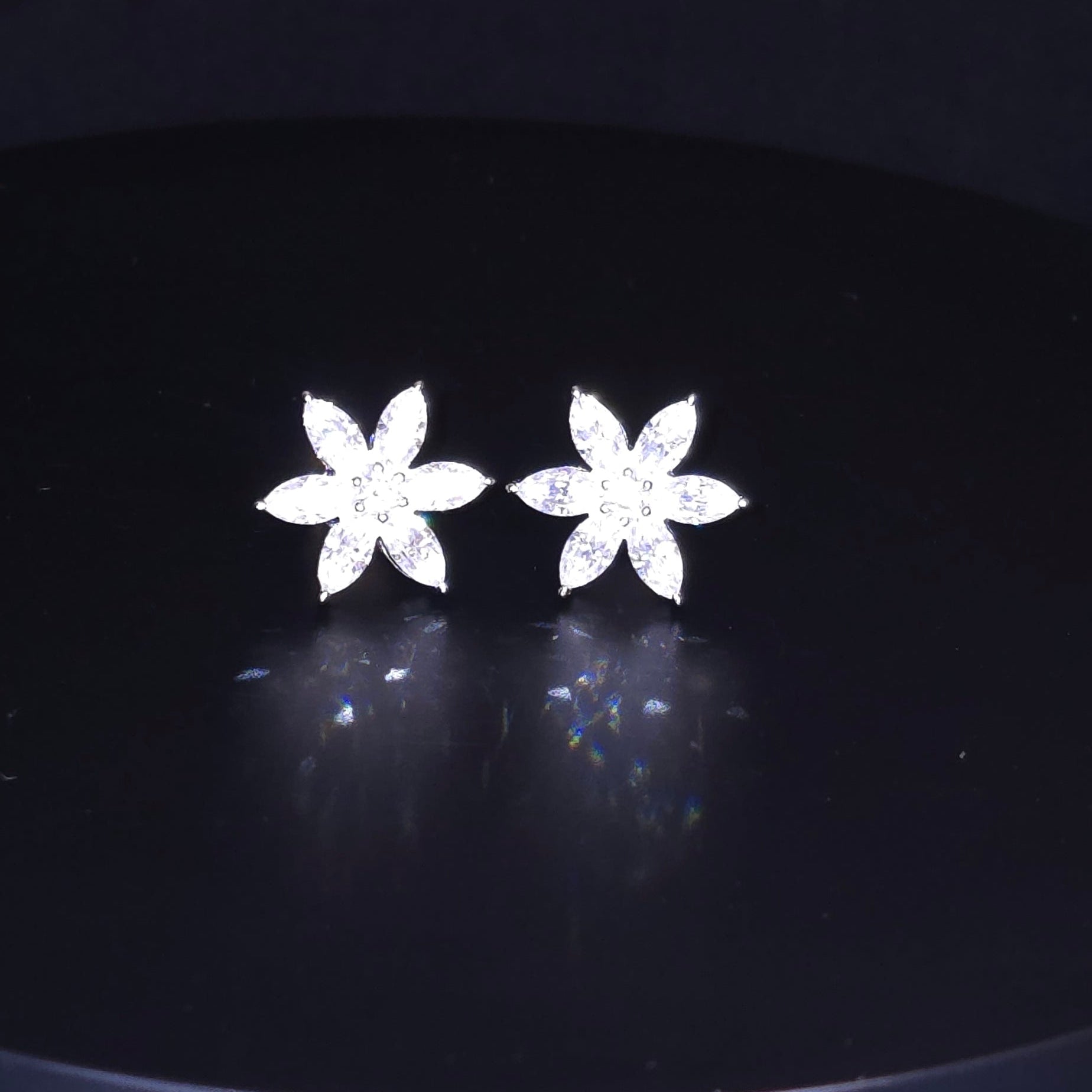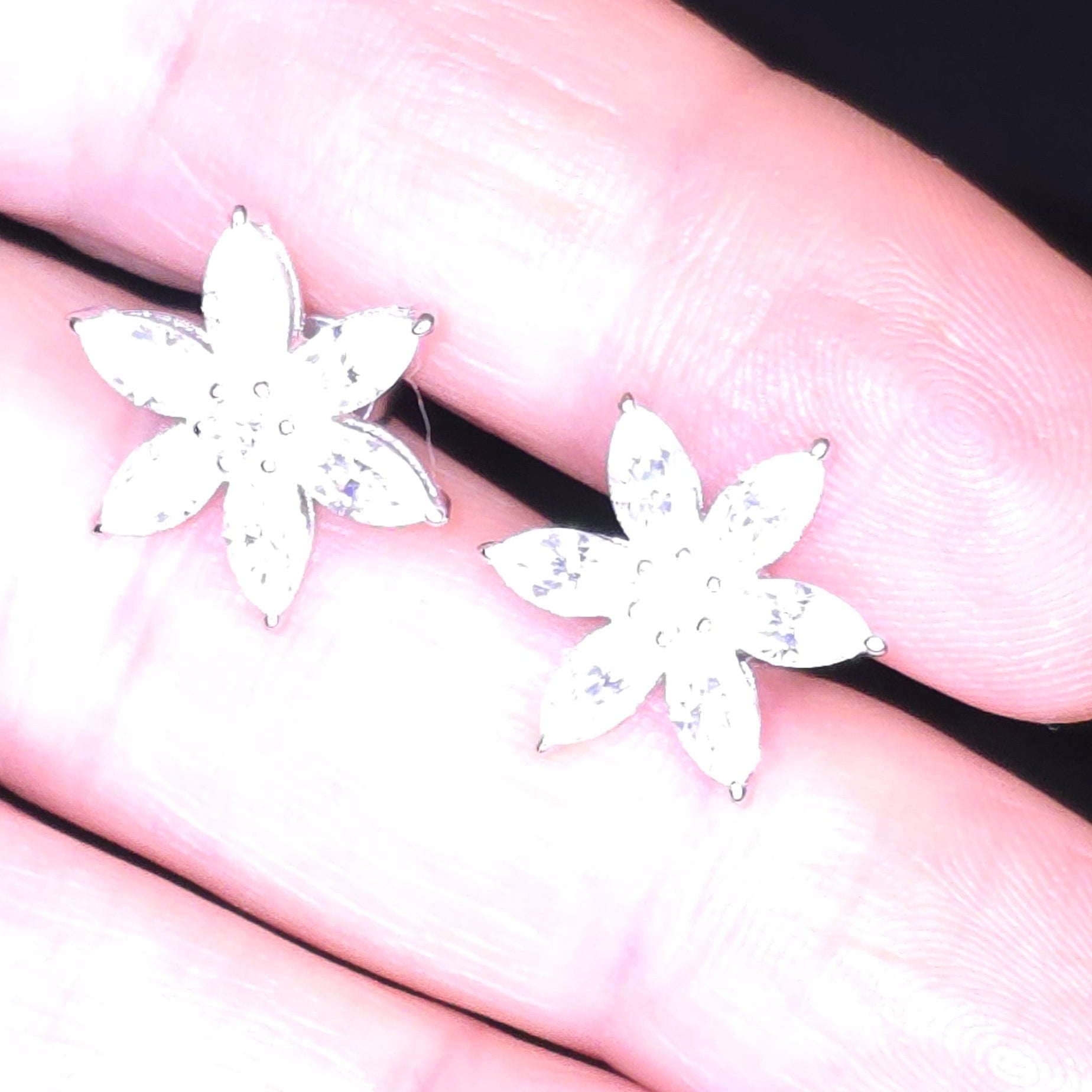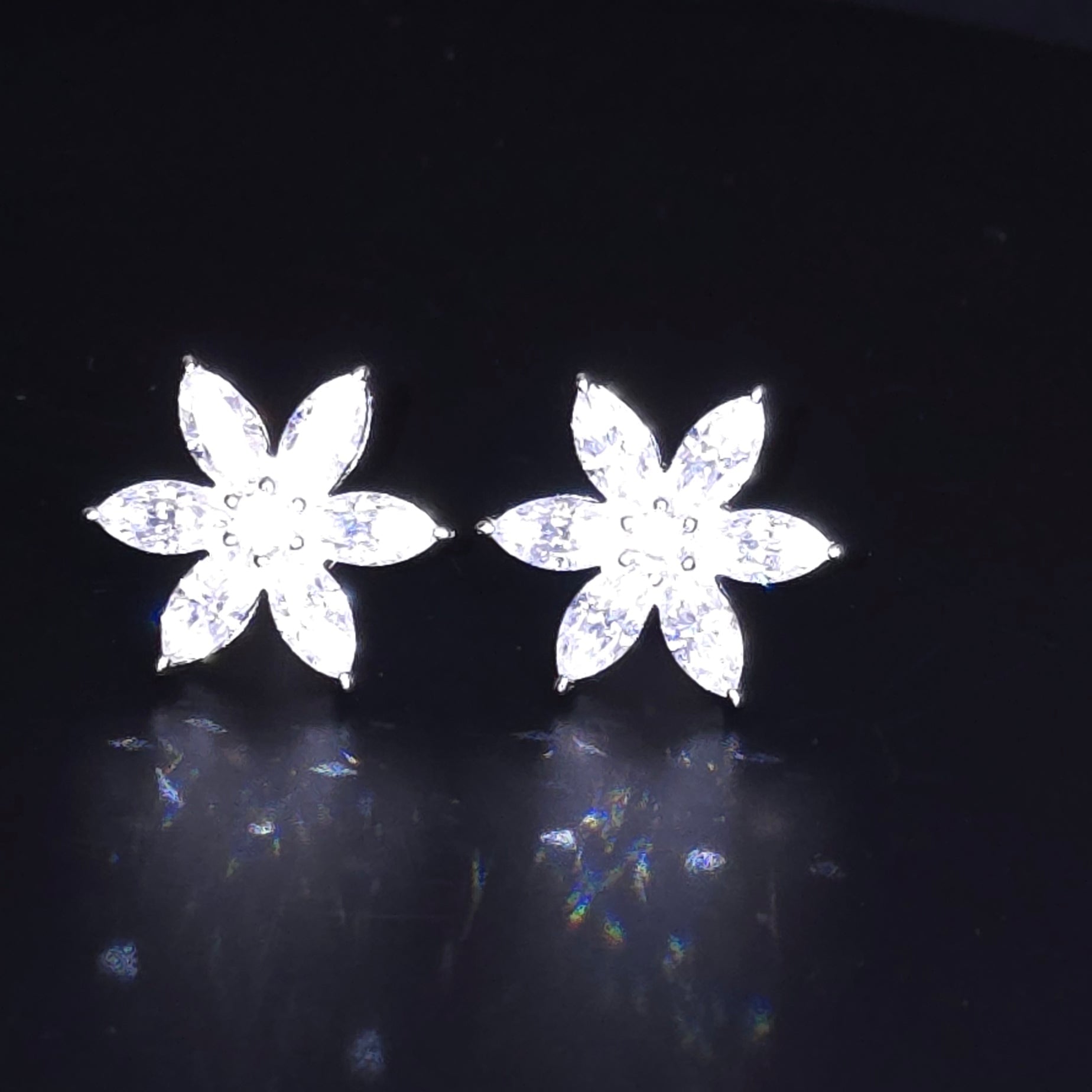 Super fint blomma örhänge med silver Guldpläterade, moissanite diamant, markis cut med brilliant.